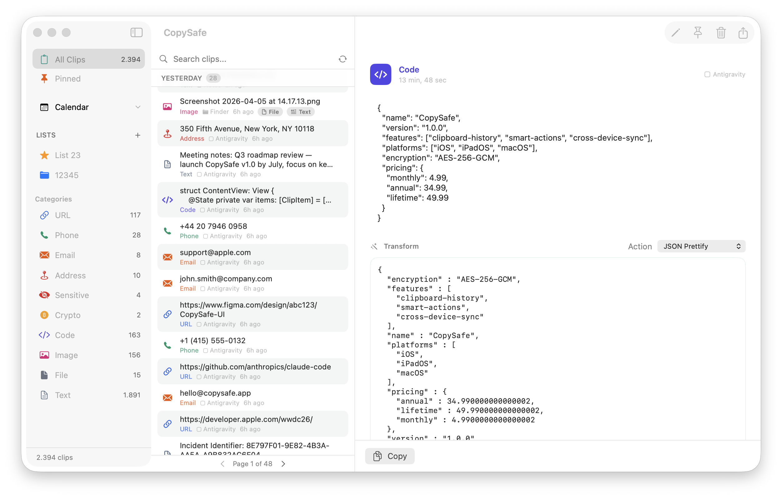 CopySafe detects what you copy, categorizes it, and suggests the right action.